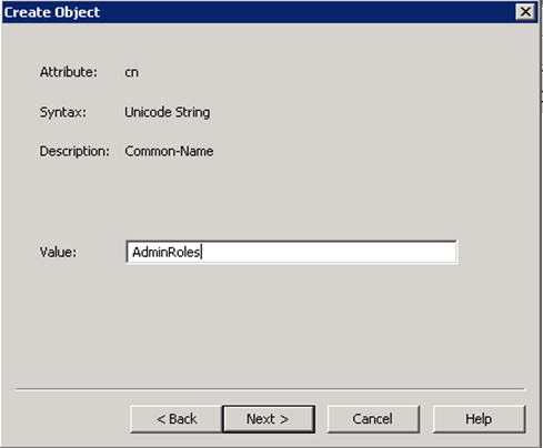 - Create a new Object in Active Directory with class of type ‘GroupOfUniqueNames’ in any group and give it any name. This name should match with the roles attribute of SecurityConstraint in the <EF Connector Home>\conf\jetty.xml, which is explained here. For illustration purposes, we have created an empty group with type ‘Container’ called AdminTestGroup. In this container we have created an object of type ‘GroupOfUniqueNames’ called AdminRoles.