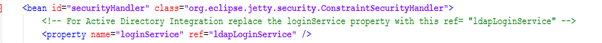 Modify the security handler bean in jetty.xml and change the ref of property name ‘login service to ‘ldapLoginService’ as shown below