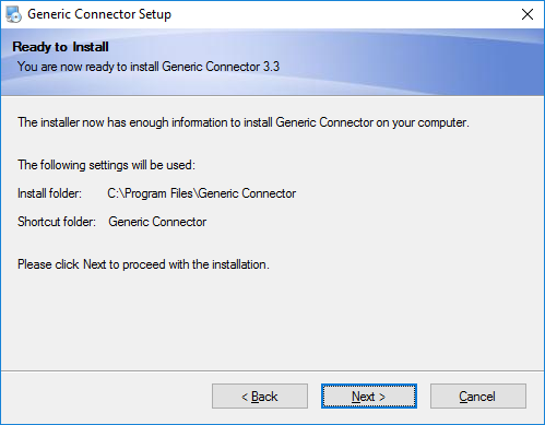 Generic Connector Configuration should look like this, For a detailed description of the GC please consult properties