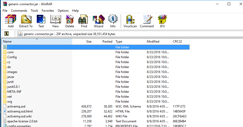 Open generic-connector.jar file using WinRAR or similar to modify the embedded configuration properties file Config/config.properties.