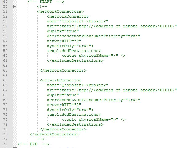 Where [AMQ-1] should be replaced with the IP / machine-name of ActiveMQ-1 and [AMQ-2] should be replaced with the IP / machine-name of ActiveMQ-2. Finesse-1 is the IP/name of the Finesse-1 server and Finesse-2 is the IP/name of the Finesse-2 server.