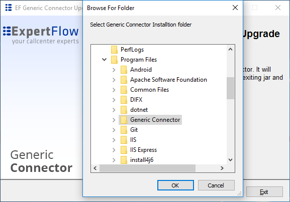 - Click Next. It will open a dialog for folder selection. Select Generic Connector installation path <EF Connector Home>.