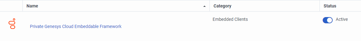 Integration > Custom Embeddable Framework > Agent | Required | — | This causes the client to appear in a private deployment of a Genesys Cloud Embeddable Framework integration. |