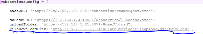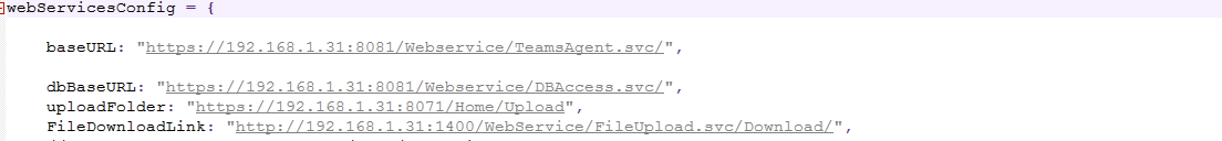 - Open the config.js file in editor (notepad/notepad++) and update the web services links according to the newly deployed chat application.