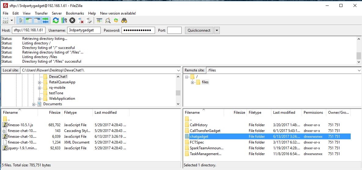 - Create a folder e.g. chatgadget into the files directory on finesse server