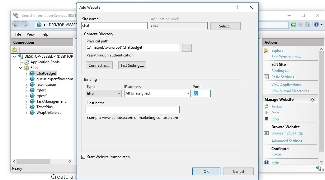 - Physical path (c:\inetpub\wwwroot\ChatApp)