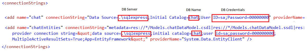 - Open the web.config file present in c:\inetpub\wwwroot\ChatApp.