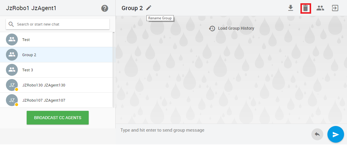 Agents can delete the history of group chat, agent-to-agent chat or broadcast chat. Once history is deleted, the agent will not be able to recover it.
