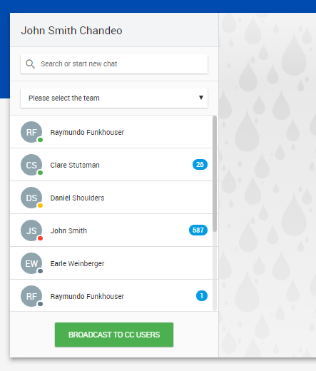 In the top right corner of the All Users list, a dropdown is available, where all the teams are available with whom the agent can chat. The agent can do the following with the filter