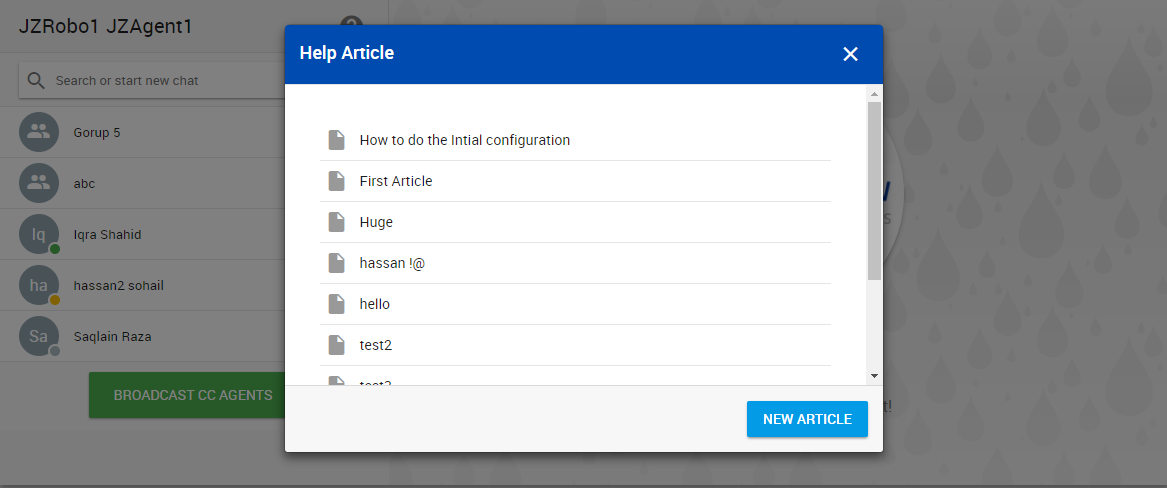 It allows the agent to manage articles for help. Any article which is added by an agent will be available for everyone. Agents can add, remove, update and read articles. Agents can access these articles by clicking on the help symbol, present in front of agent name.
