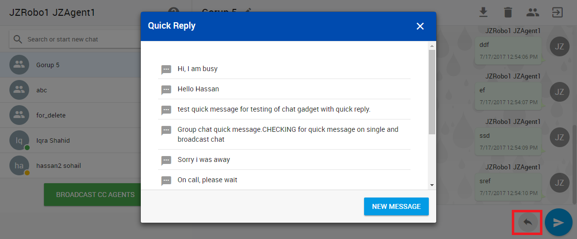 Quick reply is a short message template that can be added by any agent and is available for every user of chat gadget. It helps the agent to send a pre-written text to others. The agent can set the text in the send message box by clicking on the template.