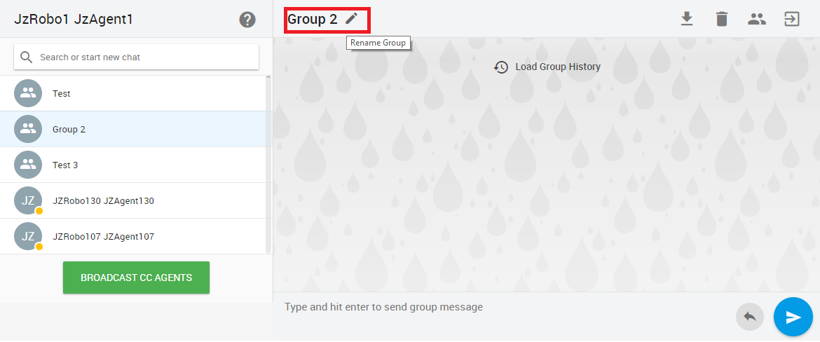 All the group members can rename the group by clicking on the group rename button present at the top.