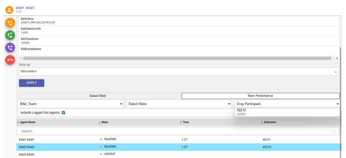 | Step 1 | From the Team Performance list, select an agent who is in a Talking state to monitor. |