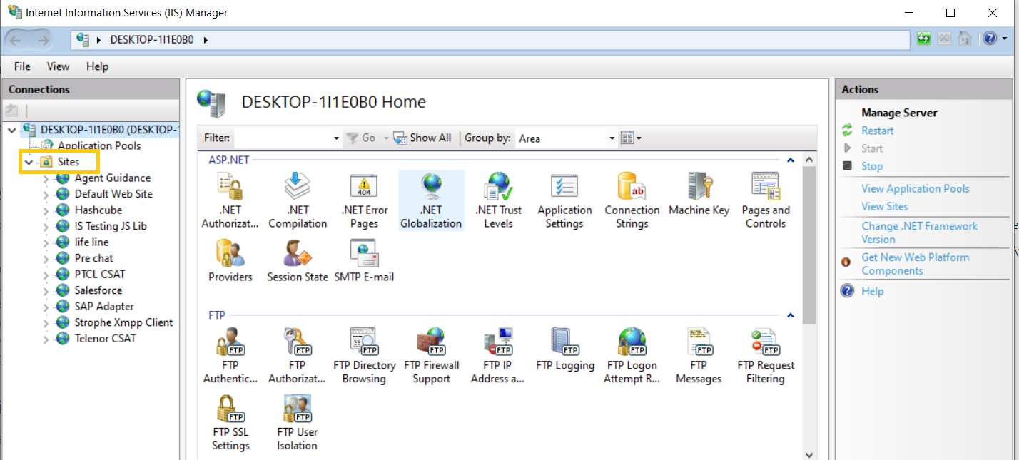 - Open IIS. It can be opened by pressing window+R, writing inetmgr, and clicking OK. It will run IIS Manager.