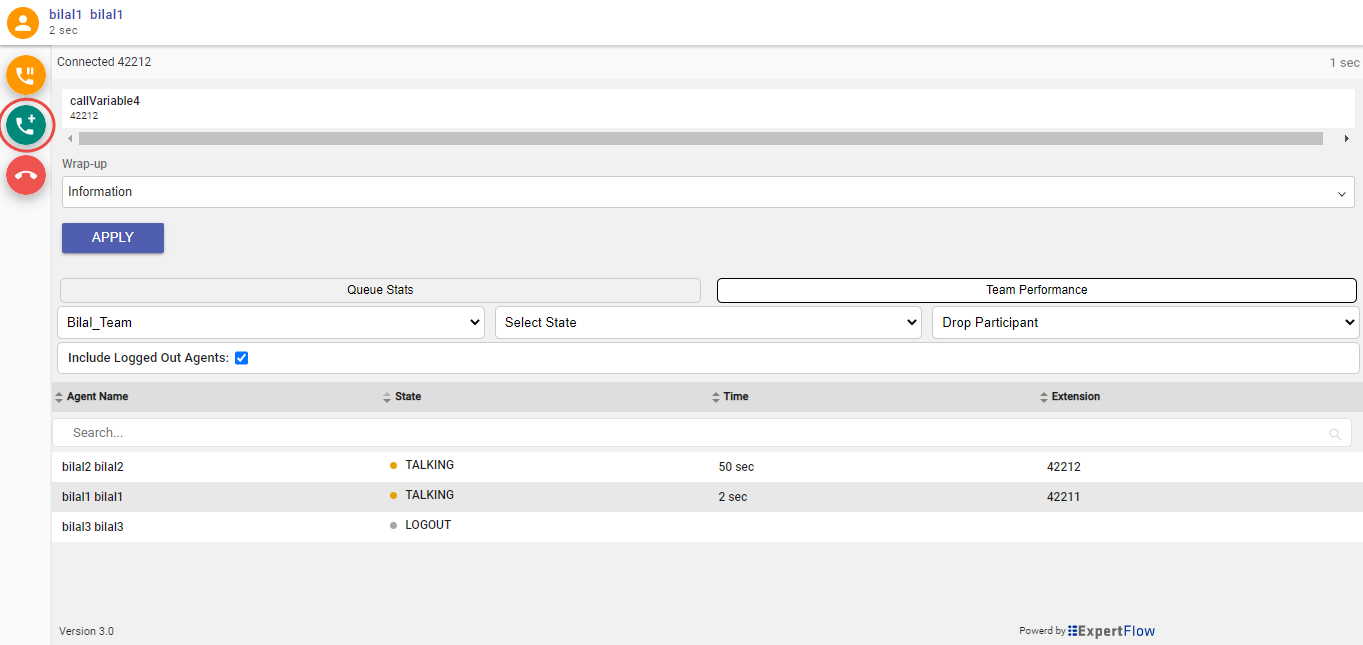 | Step 1 | From the Team Performance list, select an agent who is in a Talking state to monitor. |