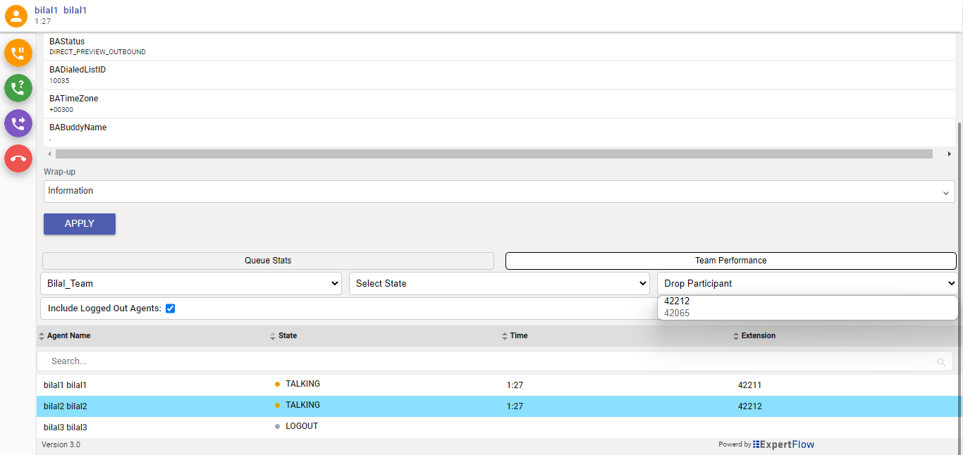 | Step 2 | Click the agent who you want to drop from the list of participants.