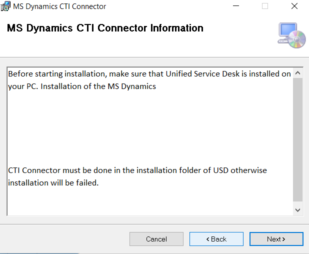 USD Connector | USD Connector is the CTI connector front-end installed on the agent machine where Microsoft Unified Service Desk is already installed. Follow these instructions. |