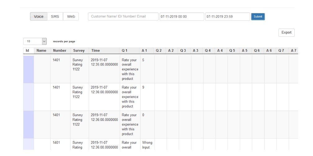 Customer | This shows the customer’s email ID in case of web surveys. In the case of voice/SMS surveys, it shows the customer’s phone number. |