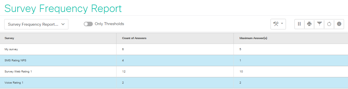 On the Survey Frequency Report page, select the date/time filters and click the Run button.