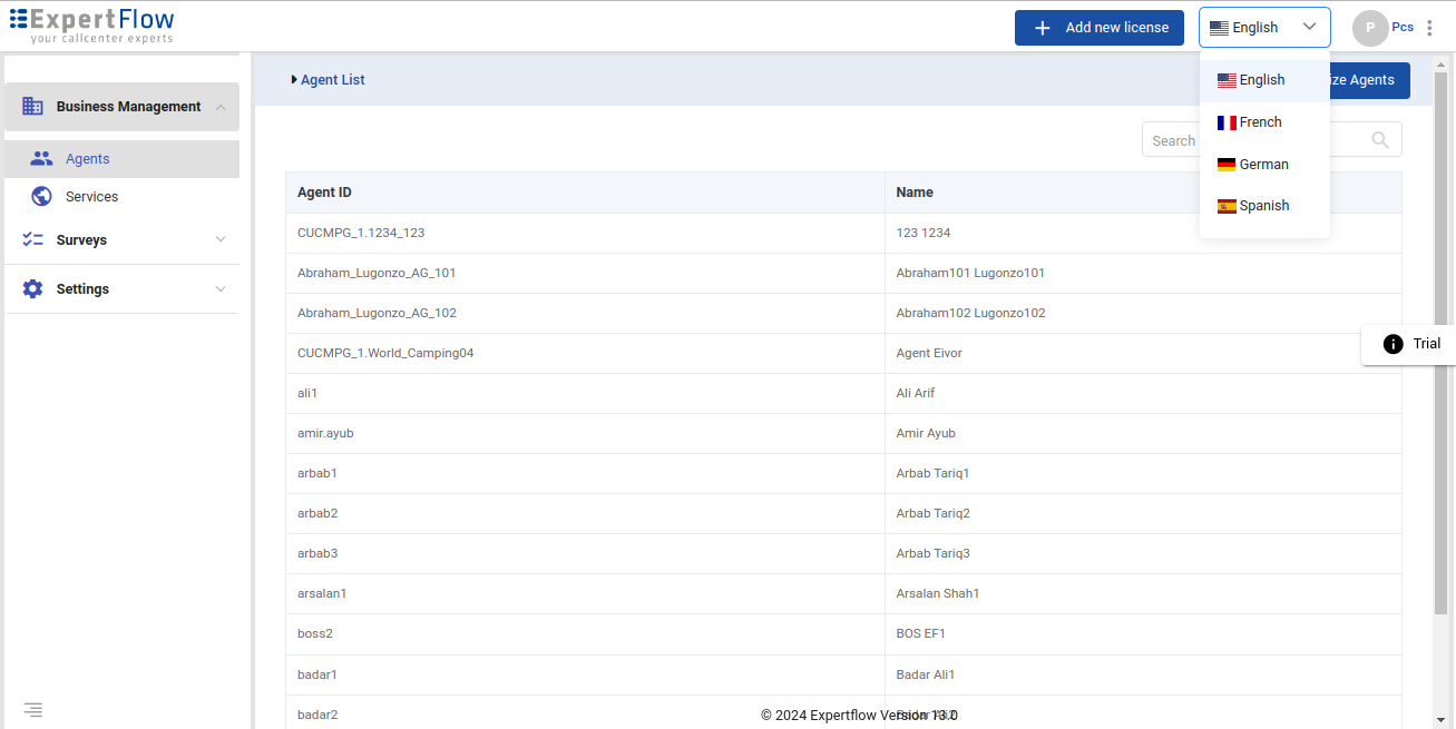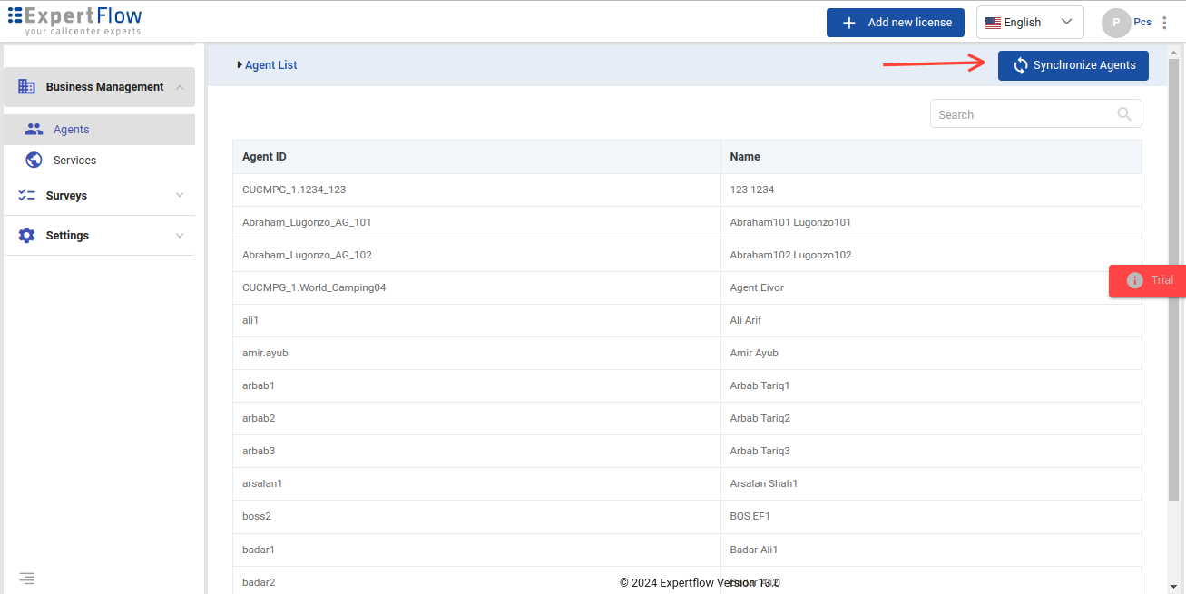 Go to Business Management→ Agents menu to view the agents list.