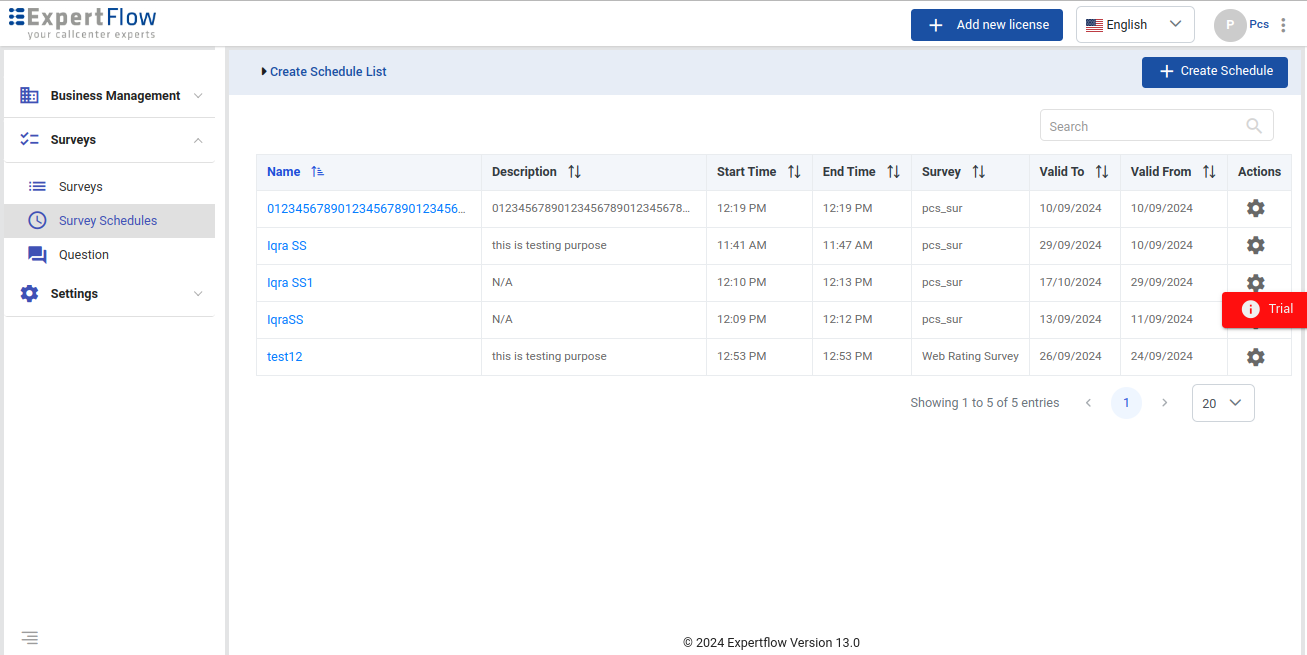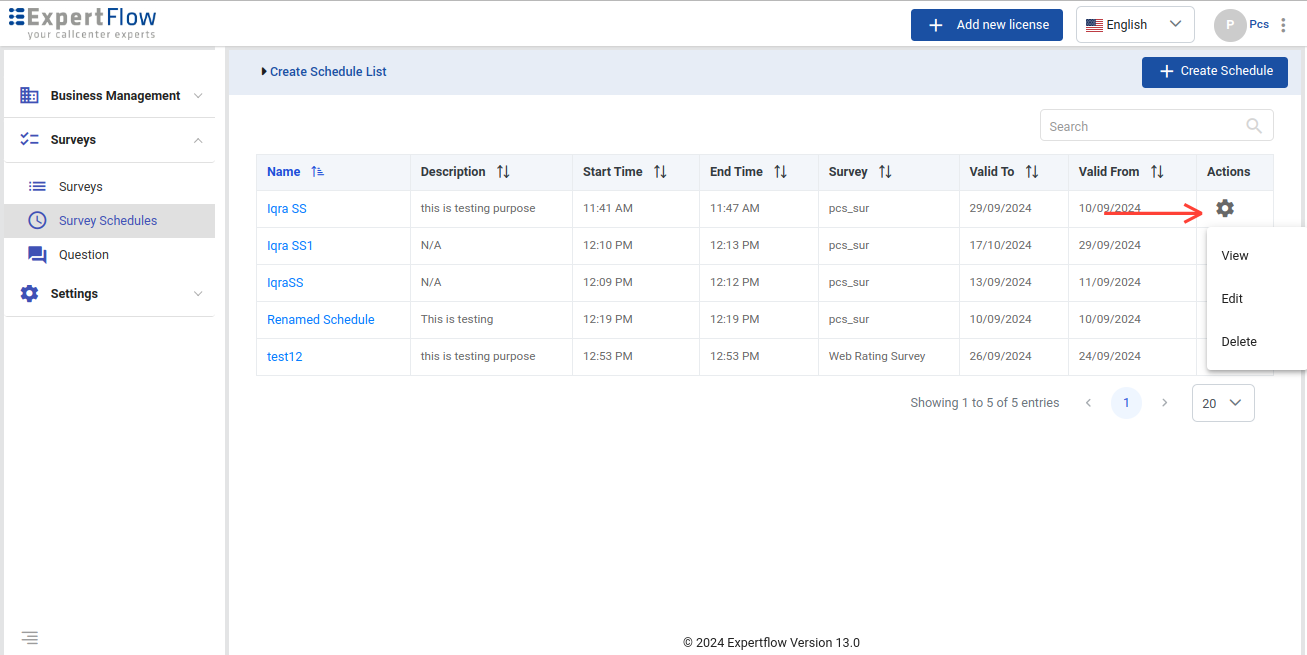You can set survey schedules against a particular survey. Schedules can be set for both “Standard” and “Real-time” surveys.