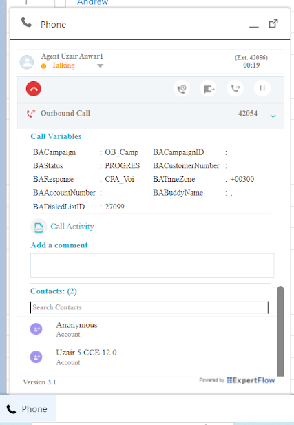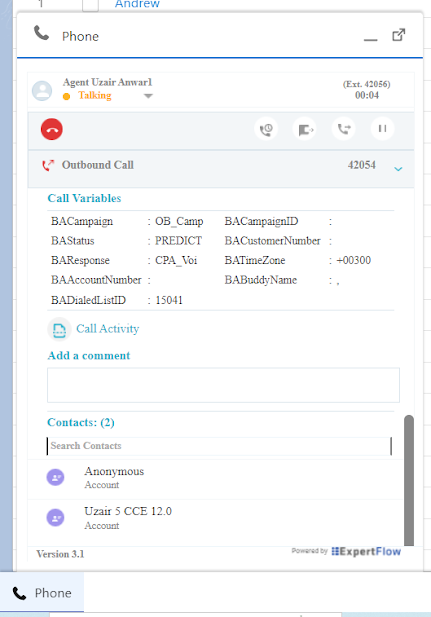 Click to dial feature is enabled when an agent is successfully logged in to the Salesforce connector application. After enabling this feature, you can see the phone tab has been enabled.