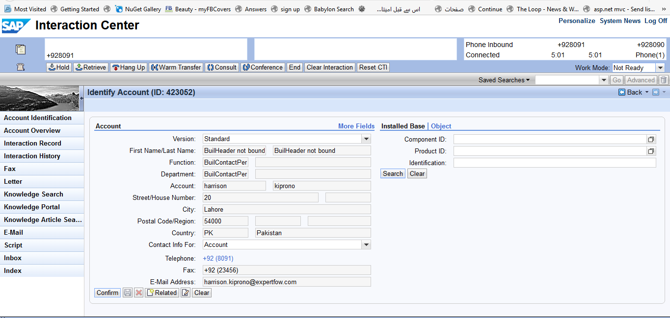 After receiving an incoming call, caller information is populated “Identify Account” tab, as in the figure below.