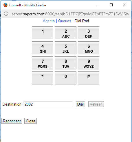 On clicking the “Consult” button following dialog box will appear. Enter the desired extension in the destination text box and press the dial button.