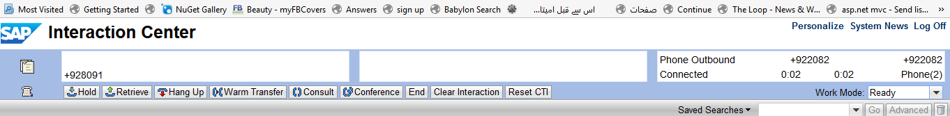 In order to receive incoming calls, the agent must set the work mode to ready. In the SAP CRM Interaction Center (IC) user interface in the right-hand side of the Toolbar, there is a dropdown list, shown in the figure below, for setting the work mode.