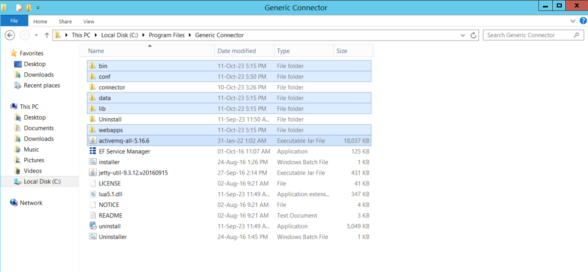 Update the following files in the Generic Connector folder C:\Program Files\Generic Connector from ActiveMQ 5.16.6