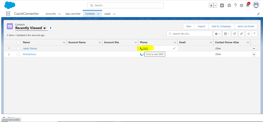 Click to dial feature allows the user to select any number corresponding to a record (Account/Contact/Lead) and an outbound call will be initiated to that number.