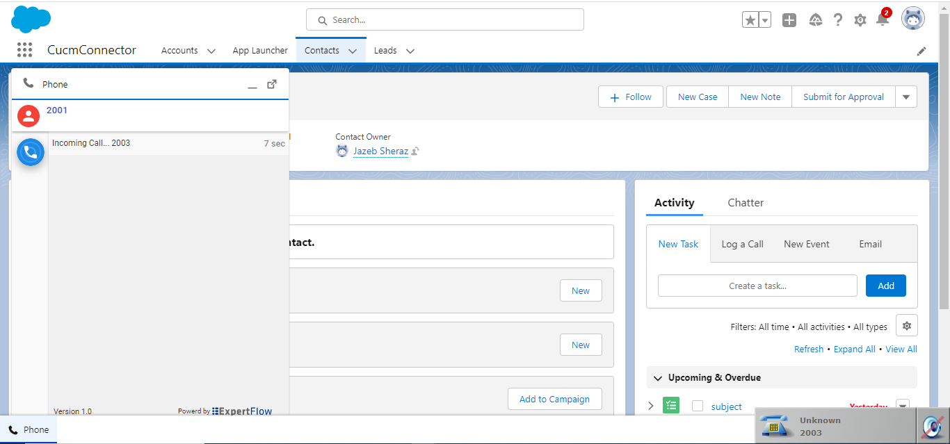 The caller information is displayed on the Salesforce Web Page as soon as the call arrives. If multiple contacts match the connector shows all those contacts for you to choose from.