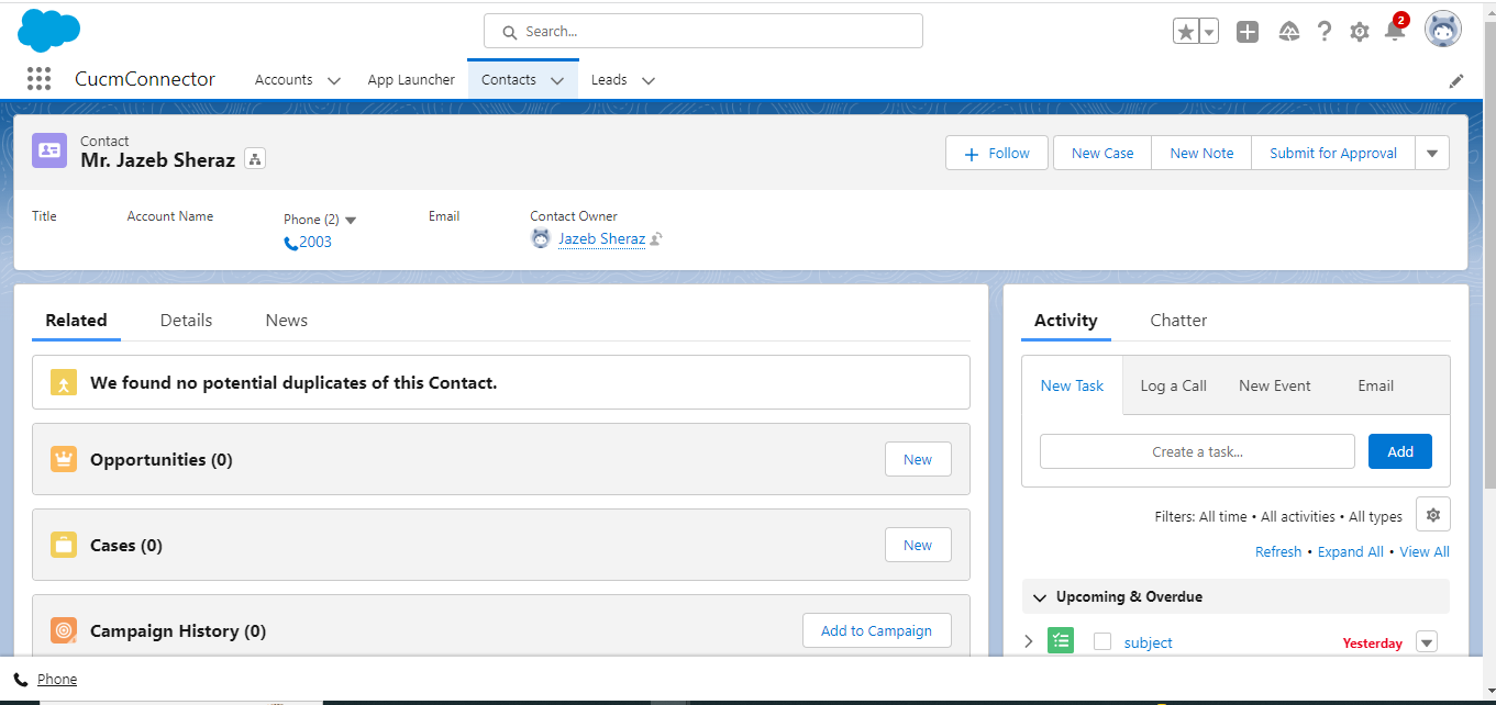 A phone call activity is automatically created and linked to the matched caller account in Salesforce Any call notes that you write while handling the call are also saved along with the phone call activity