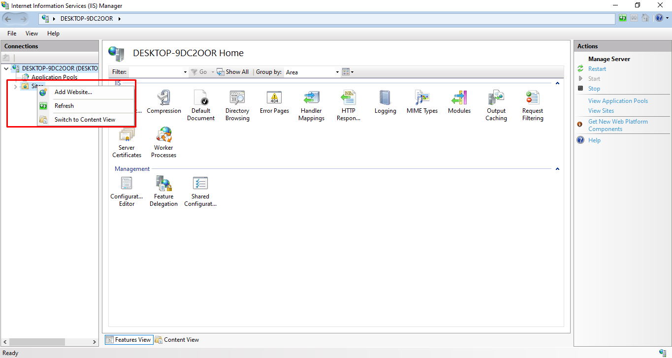 Open IIS. It can be opened by pressing window+R, writing inetmgr, and clicking OK. It will run IIS Manager.