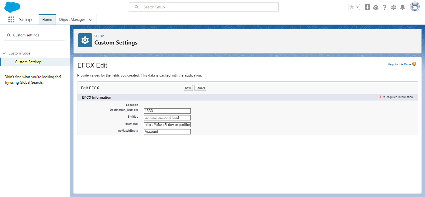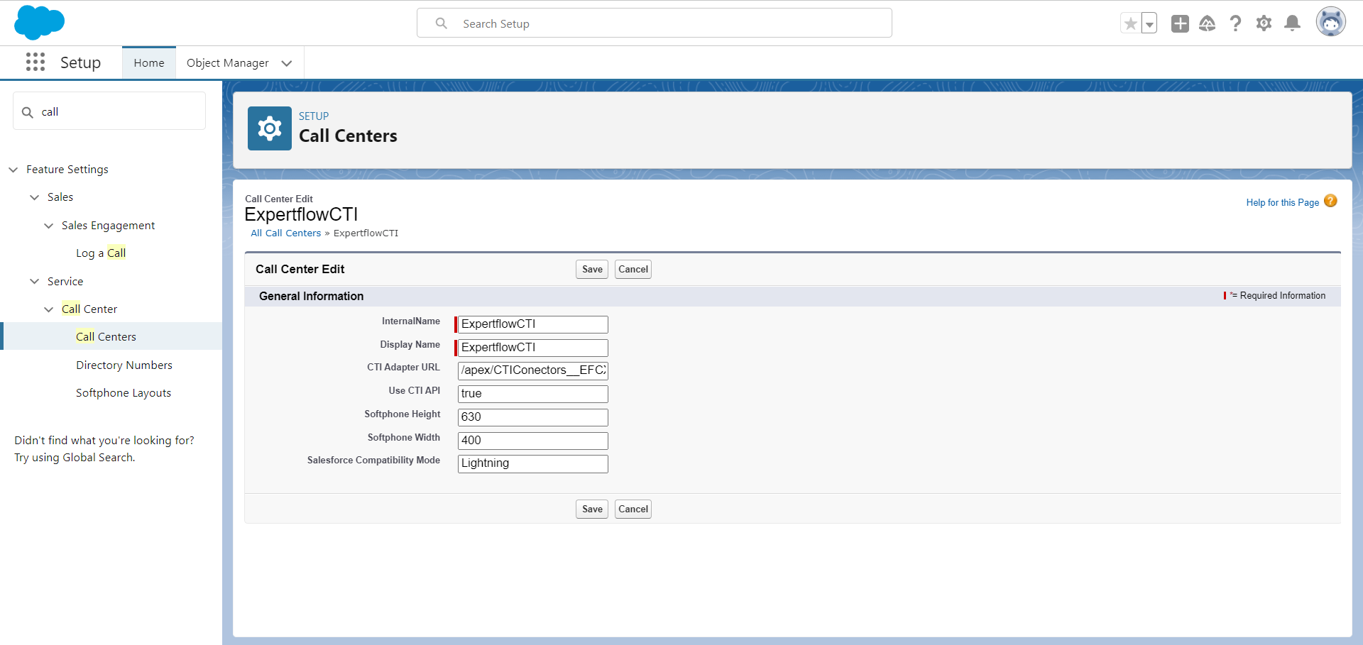 Verify the CTI Adapter URL as “/apex/CTIConectors__EFCX“