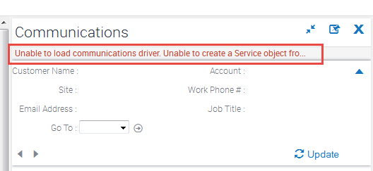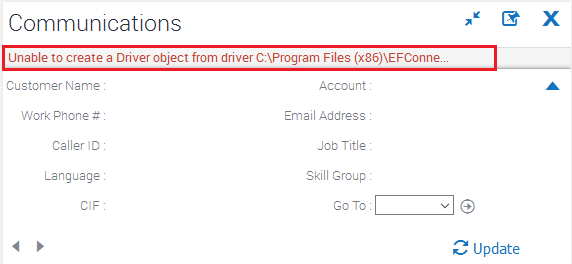 Agent logs in to Siebel communication toolbar but the Driver is not loaded and returns with an error message “Unable to load communications driver. Unable to create a Service object fro...”