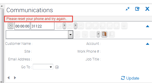 If the problem persists, logout and then re-login on the Siebel communication toolbar.