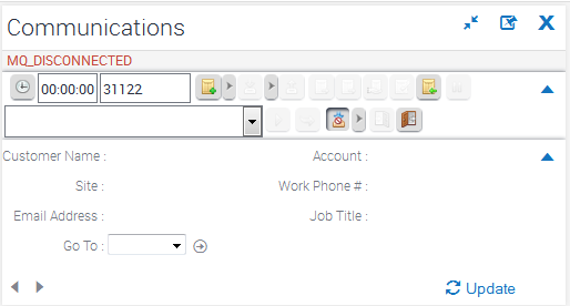 This happens when the Driver doesn’t get the response from the Connector or from the AMQ within a specified timeout period. A configured friendly message for the code “MQ_DISCONNECTED” is displayed and shortly after this message, the toolbar is disabled.