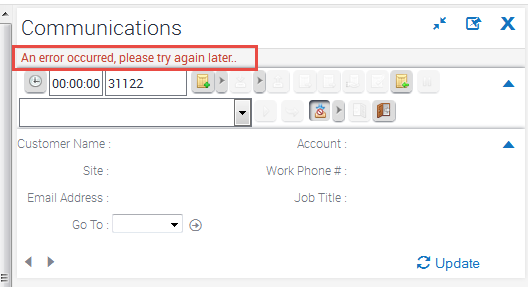 Agent tries to make a call but gets the message “An error occurred,please try again later”.