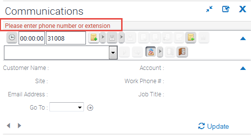 Agent tries to make a call (simple, consultative or blind transfer call) but gets message “Please enter phone number or extension”.