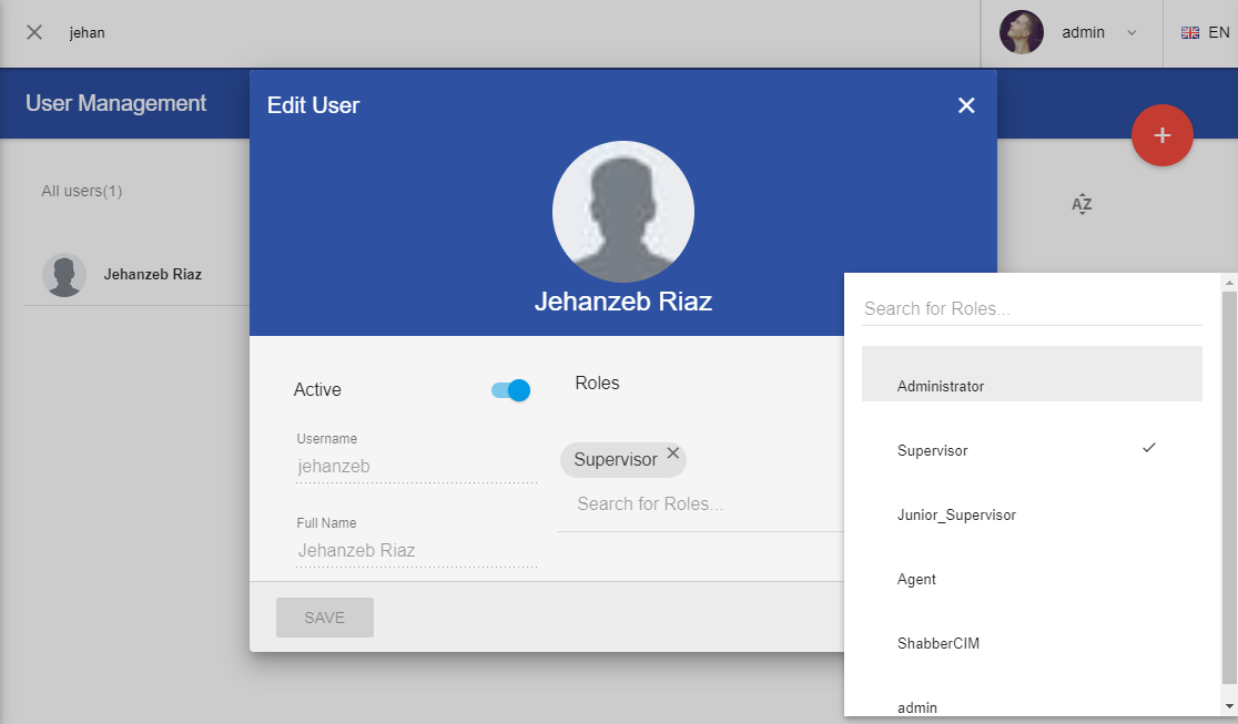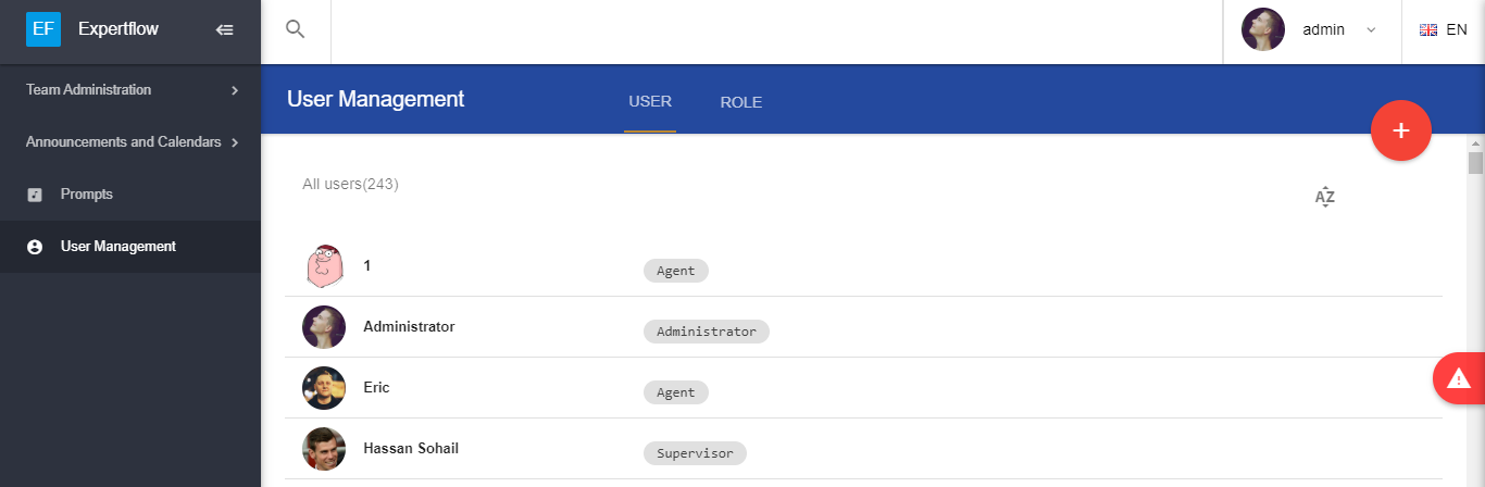 Except the master user, i.e. “admin” (provided by EF to log on for the first time in the application), each user in EF Supervisor Tools has UCCX “supervisor” capability by default. To make a user an administrator on the EF tool, update the user role from Supervisor to Administrator from the User Management interface.
