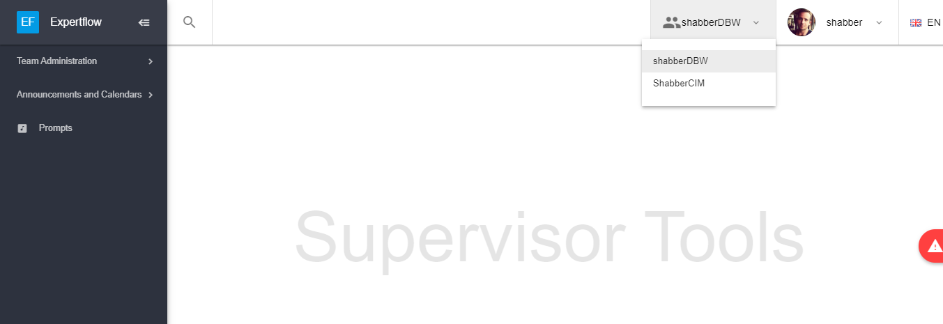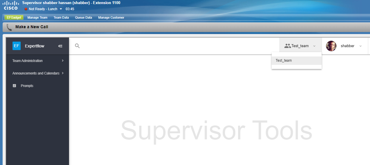 The users of Supervisor Tools are UCCX supervisors and administrators. When logging in as a supervisor, use the CCX credentials to start managing your team configurations. Use the super admin credentials (provided by the EF team for first time login) to have an admin-level access to all UCCX configurations.