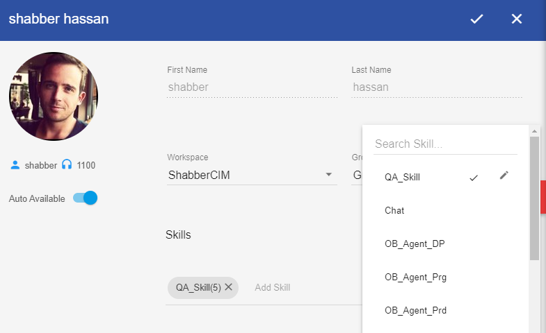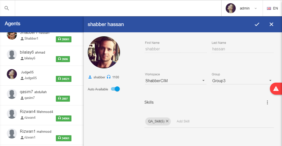 Go to Users page to see a list of all system users. The User list shows all administrators, supervisors and agents of CCX (synched from UCCX) and also, all local users created within the application.