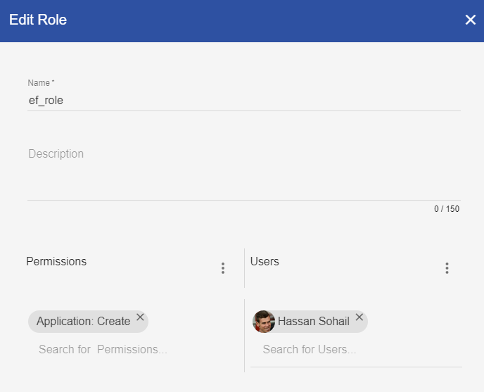 Description | An optional description of the role having a maximum of 150 characters. | No |