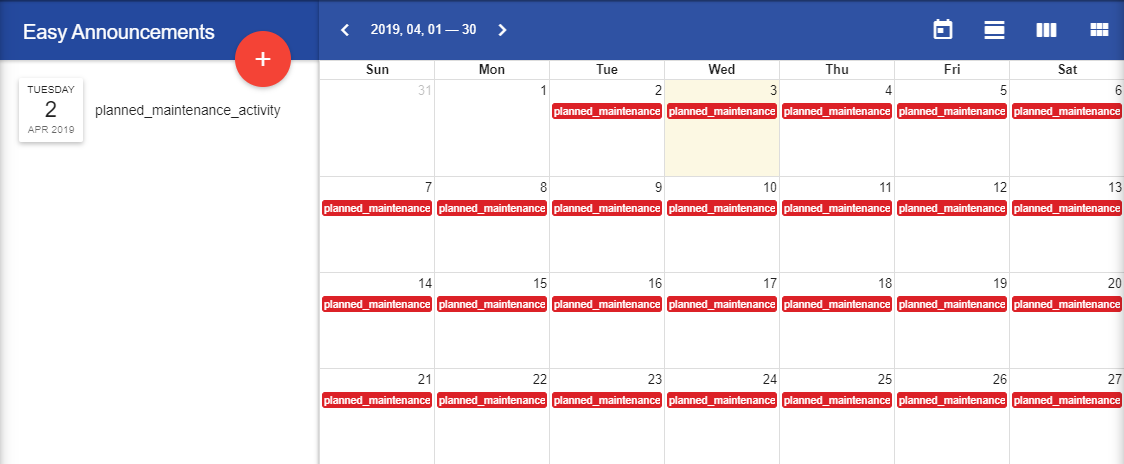 Once the announcement is created, it will appear on the calendar. Multiple instances of an announcement will appear based on the recurrence/repeat settings specified above.