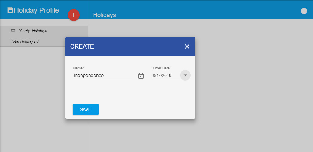 Start adding holidays in the profile by selecting the profile name from the list and clicking the + icon shown on the top right corner.