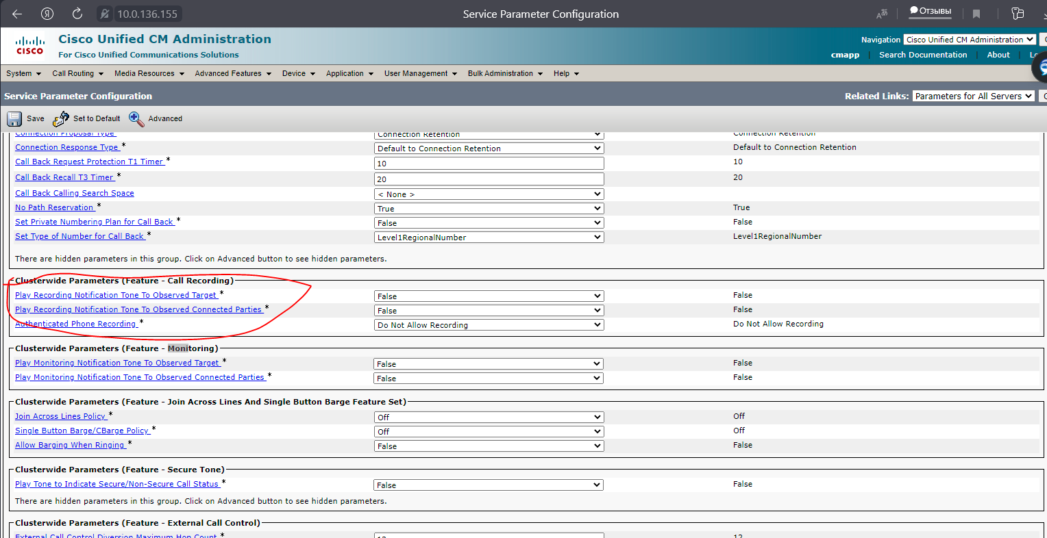 - While enabling start monitoring from the supervisor you start hearing long beeps on the client phone, then you should change some cucm settings noted bellow: Clusterwide Parameters.