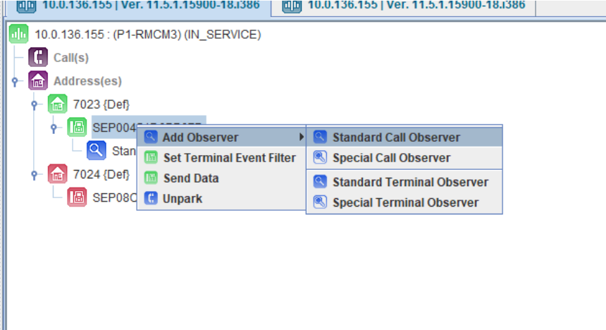 Step 6. Add call observer on the supervisor extension and initiate a call from a customer to the agent.