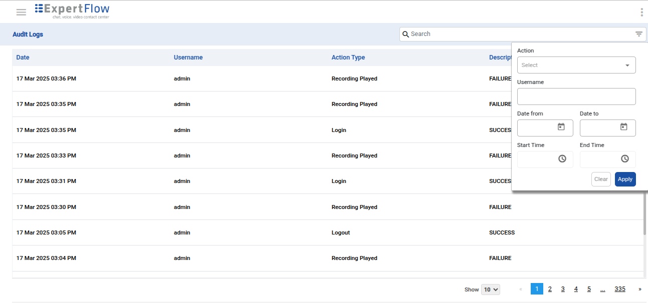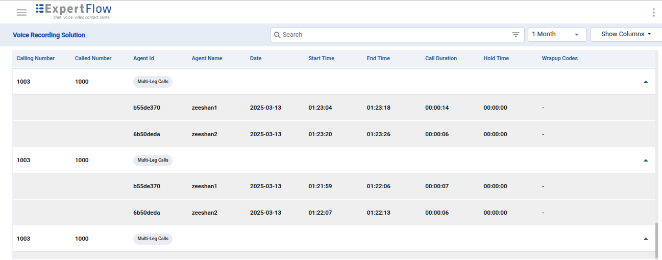 Search Recordings on VRS UI: