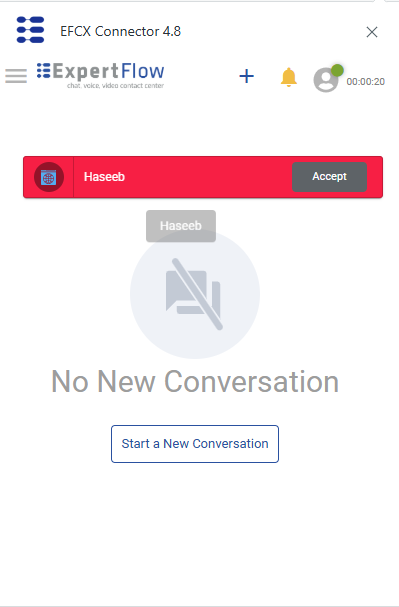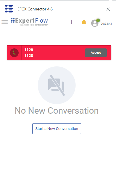 Once an agent receives a new request, an incoming call notification appears on the Agent Desk, with a button to Accept the request. The notification contains the number of the customer.